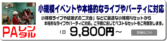 小規模ライブやパーティするなら、お得な「簡単PAレンタルセット」を。